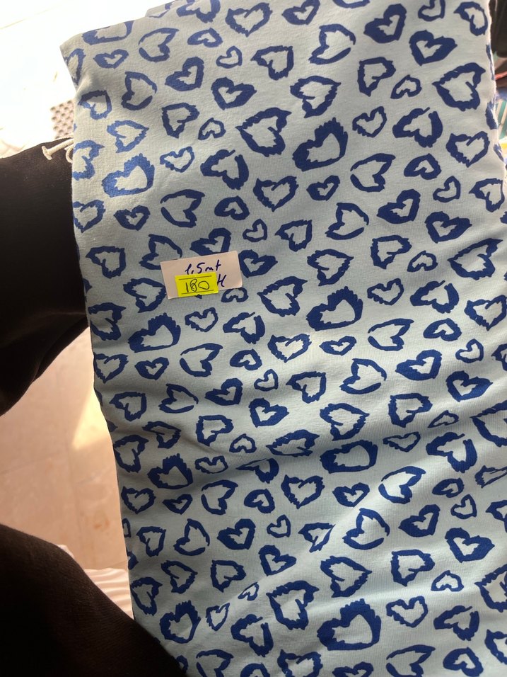 Mavi ve gri renklerde kalp desenli parça kumaş ölçüleri 1.5m x 180 tl , yumuşak kumaşlı.