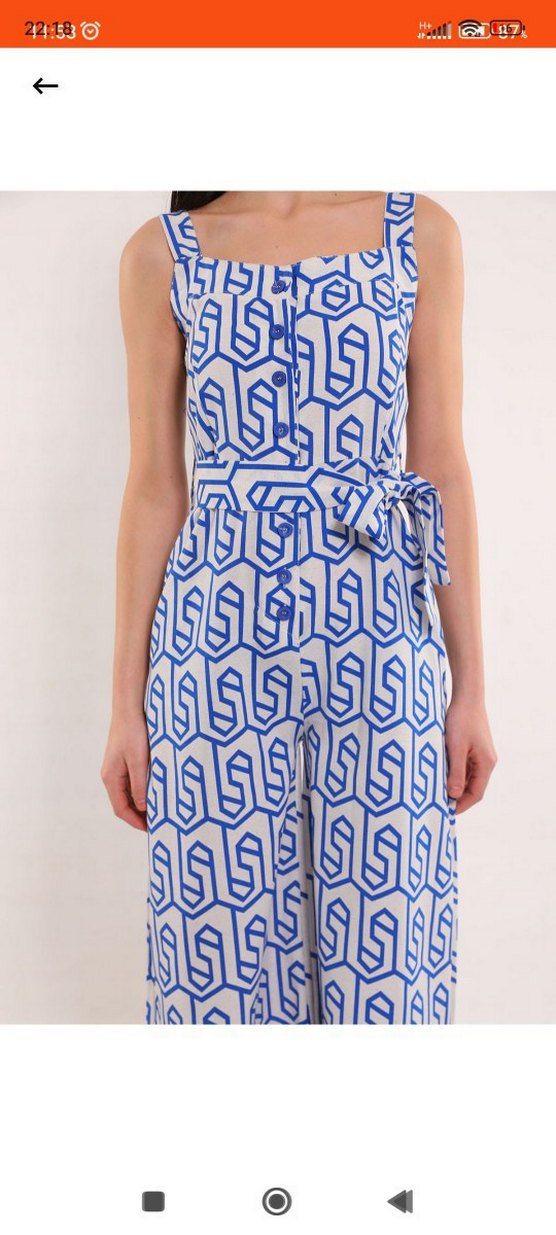 Hafif mavi, regular fit, kemerli kadın uzun kumaş tulum. Sentetik kumaştan yapılmış, çağdaş yılan desenli, trend günlük ve athleisure tarzına uygun.