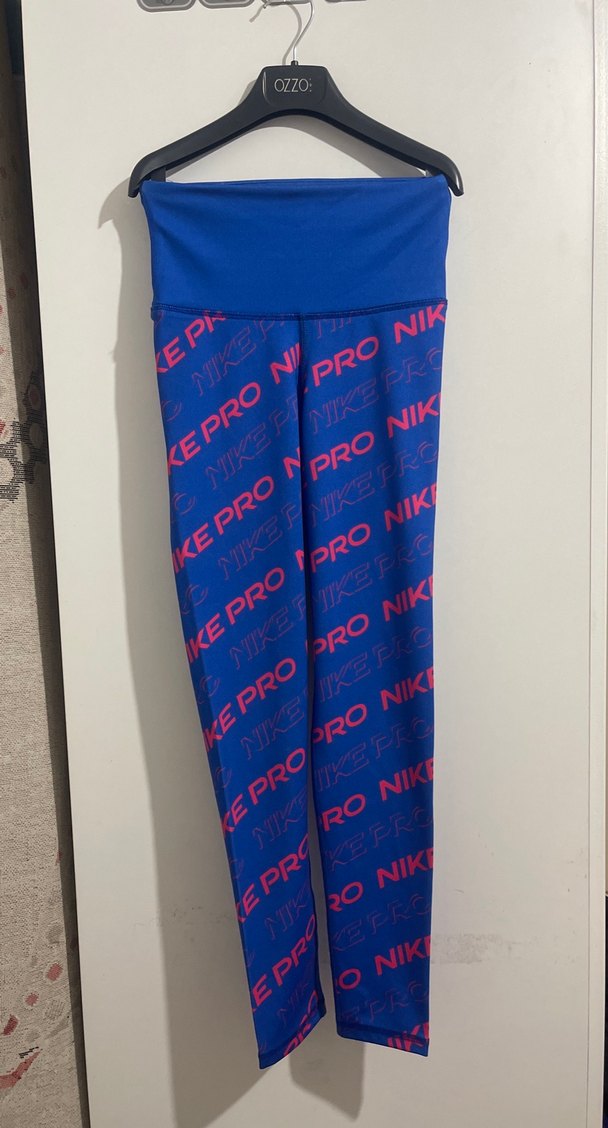 Renkli mavi baskılı, normal boy ve dar kesim kadın spor taytı, Velcro detaylı, sentetik kumaştan, spor ve sokak stiline uygun.