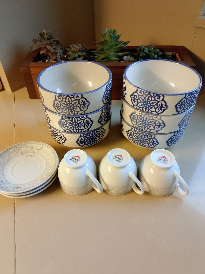 Mavi Desenli Kaseler ve Kahve Fincanları