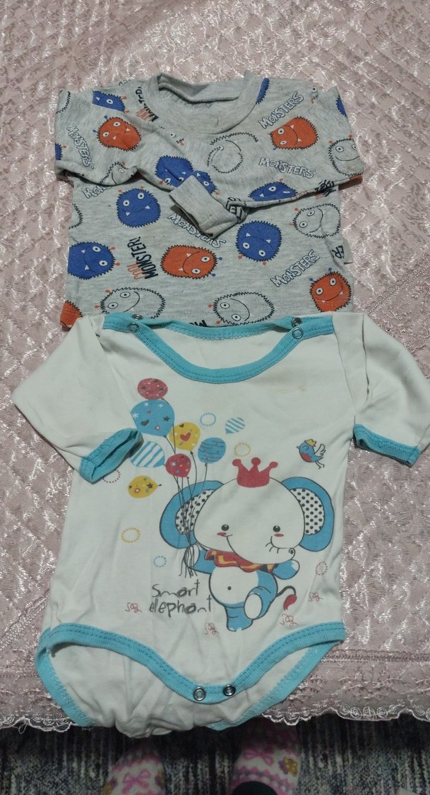 Yumuşak pamuktan yapılmış, renkli baskılı ve dantel detaylı kısa kollu bebek body. Yuvarlak yakalı ve çıtçıtlıdır.ikili fiyat