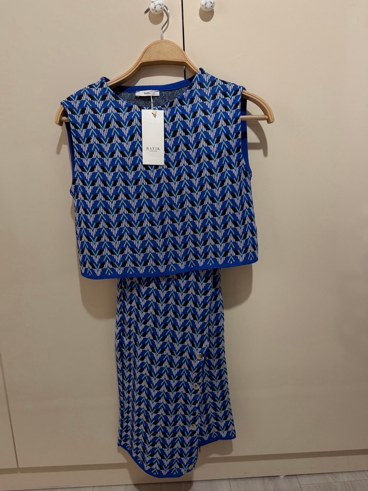 Mavi Desenli Kısa Triko Kadın takım
