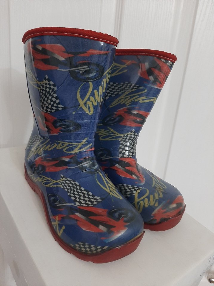 Mavi Desenli Lastik Erkek Çizme