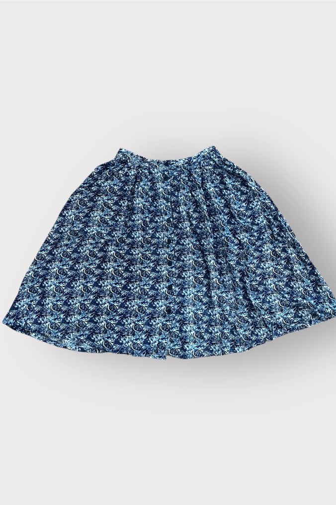 Beden: Bel kısmı lastikli / rahat kalıp (S-M arası beden) Renk & Desen: Lacivert – mavi tonlarında, beyaz desenli Kumaş & Doku: Hafif, dökümlü kumaş. Günlük kullanım için çok rahat. Detaylar: • Midi boy • Belden pileli, rahat kesim • Ön kısmı düğmeli • Yan cepli (kullanışlı detay) • Yaz ve bahar ayları için ideal Kalıp: Rahat kalıp, hareket özgürlüğü sağlar.