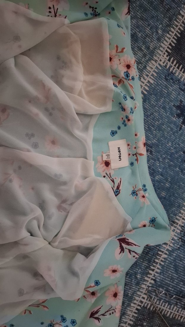 Yumuşak sentetik kumaştan, mavi pastel çiçekli desenli, koton marka mini ceket.Bohem tarzı için uygundur.