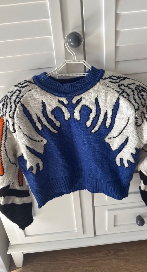 Mavi Desenli Örgü Kadın Kazak
