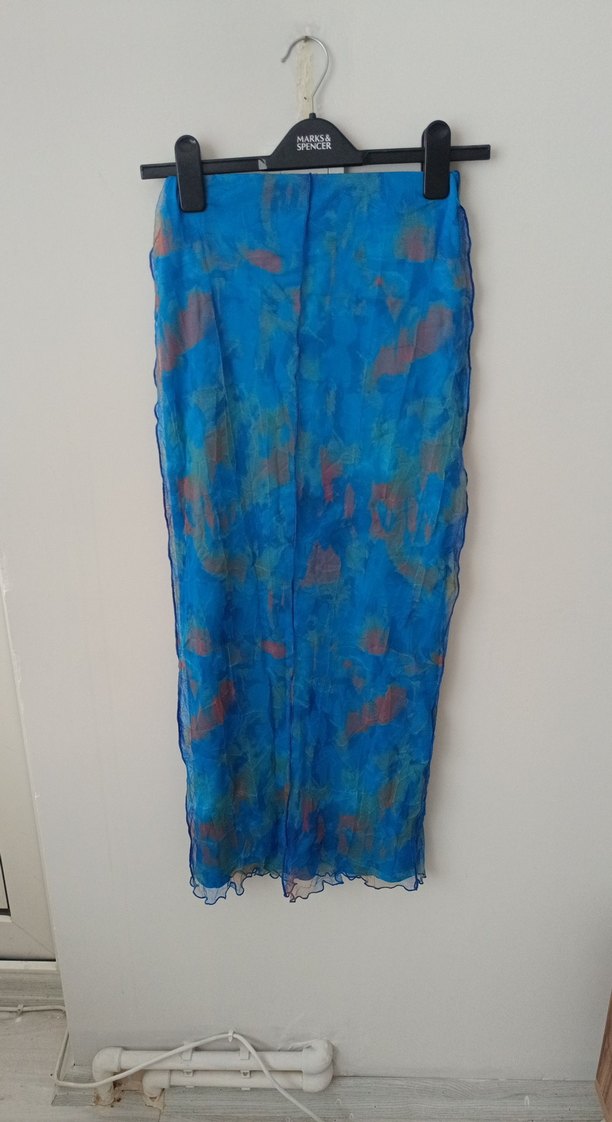 Mavi desenli tul etek
