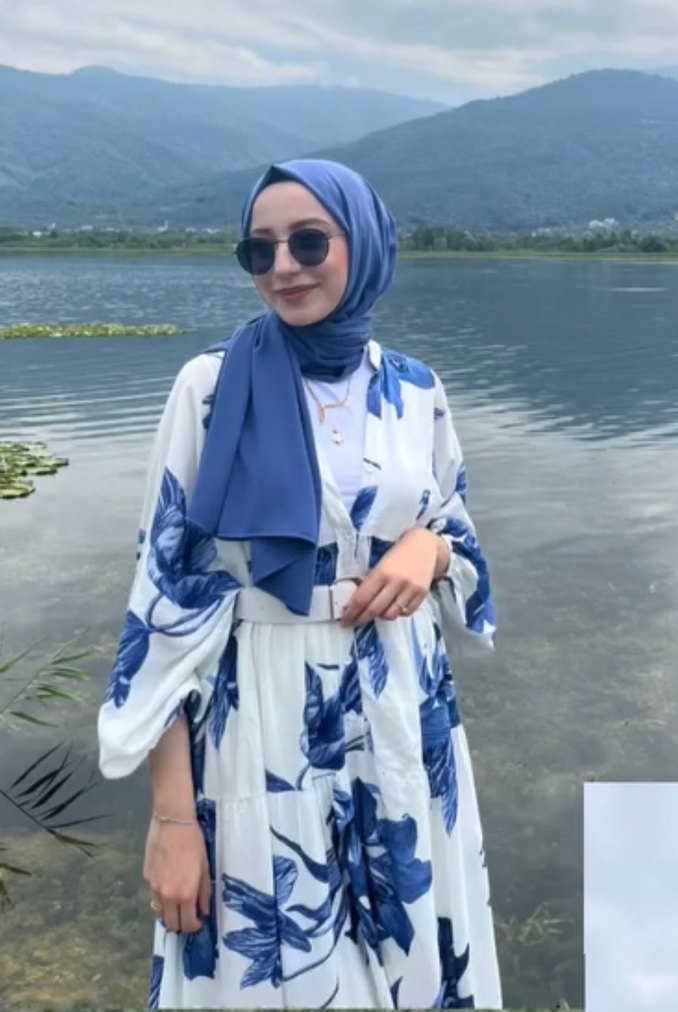 Mavi Desenli Uzun Salaş Elbise