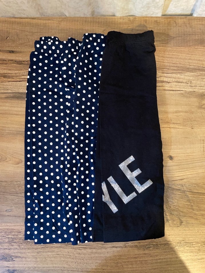 Sentetik kumaştan, düğmeli ve baskılı desenli, bol kesim koyu mavi kız taytları. 'STYLE' yazısı bulunur.