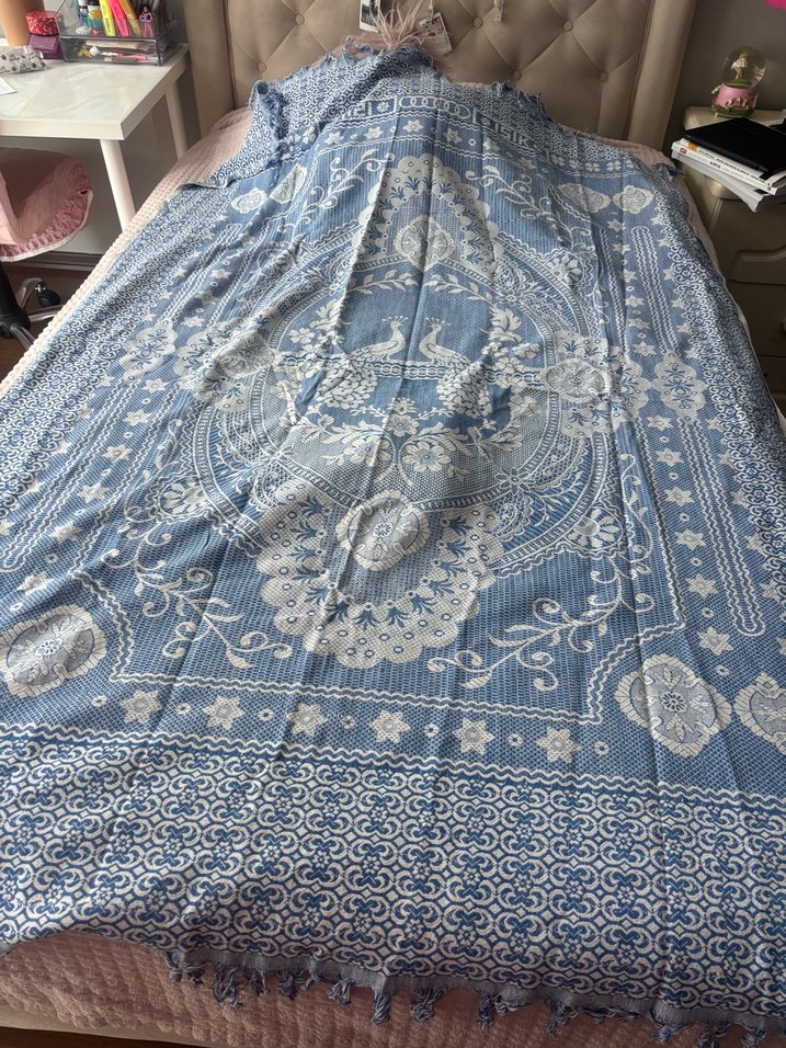 Mavi Desenli Yatak kanepe Örtüsü ve pike