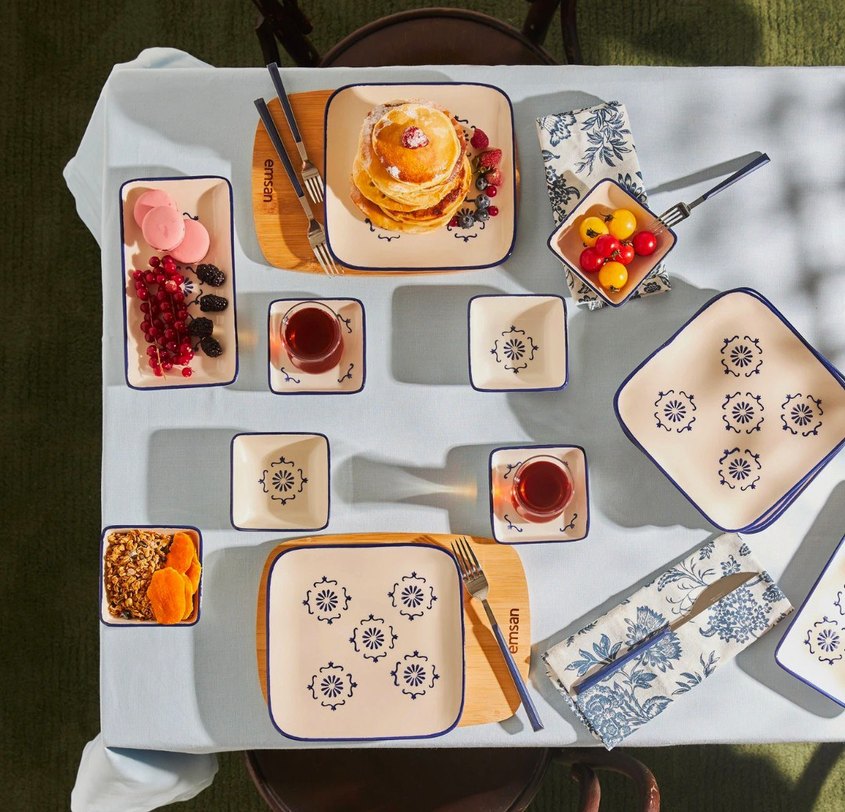 Emsan Mavi Desenli Kahvaltı Seti