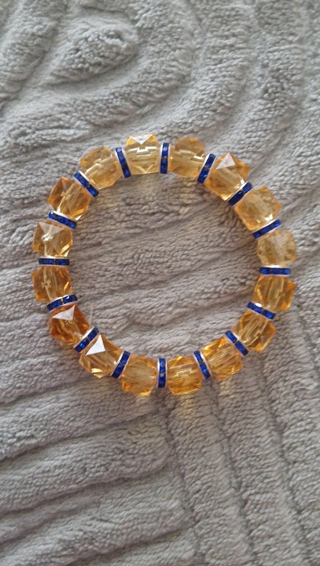 Boncuklu, bohem tarzda, turuncu boncuklar ve mavi halkalarla renkli ve gösterişli kadın bileklik. Günlük kullanım için uygun. ✨