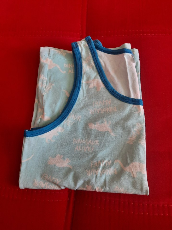 Pastel mavi renkte, dinozor baskılı çocuk atletidir. Yaka ve kol çevresi mavi renkte bantlıdır.