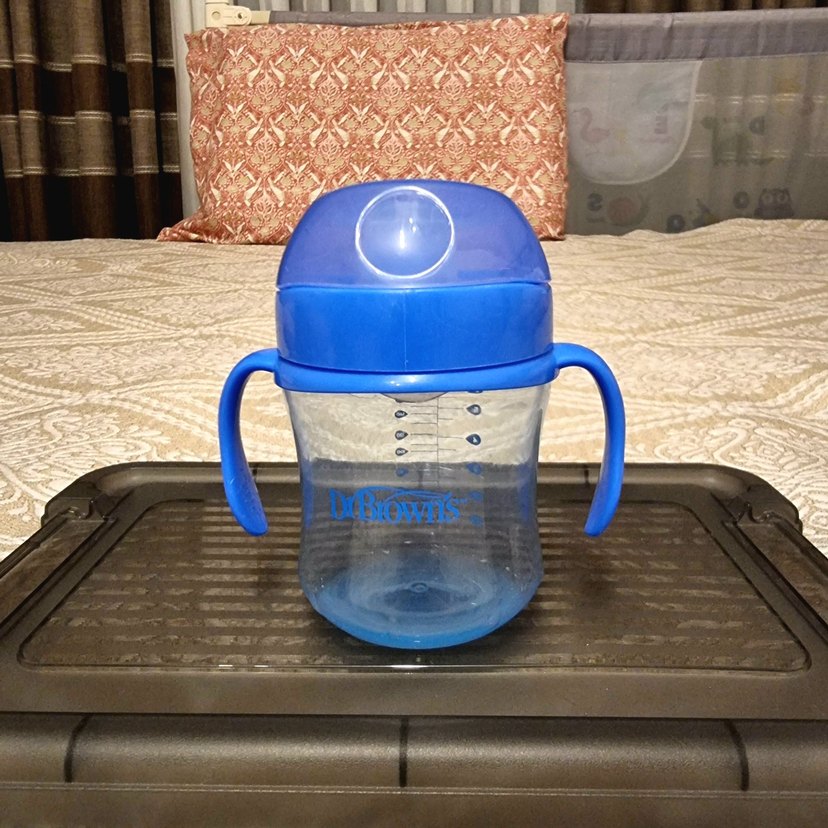 Dr. Brown's marka,kolay tutulabilen saplı ve koruyucu kapaklı, renkli mavi tasarımlı bebek biberonu.DR'BROWNS 180 ML YUMUŞAK UÇLU ALIŞTIRMA BARDAĞI