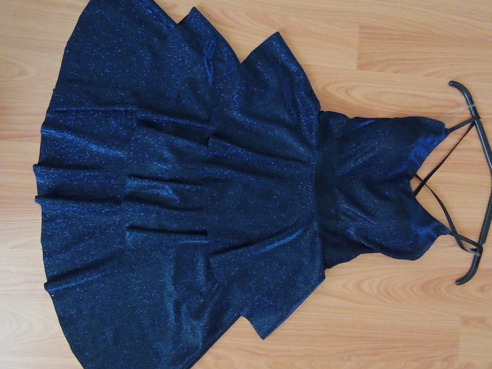 Mavi, drapeli, V yakalı uzun ve dar kesim abiye elbise, parıltılı kumaş ve askılı kollara sahip, şık bir parti kombini için ideal. ✨