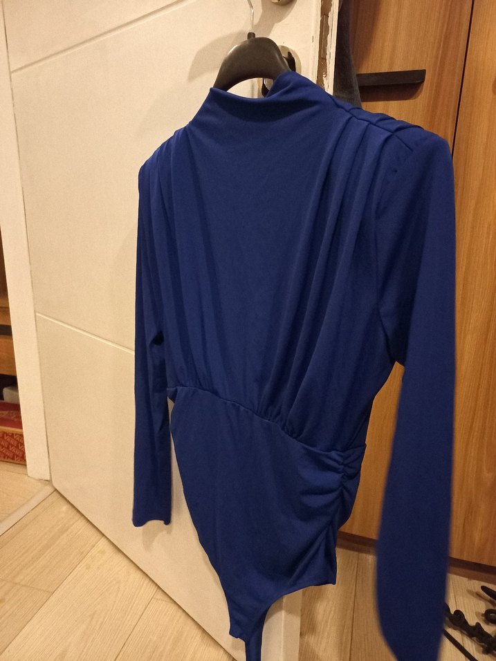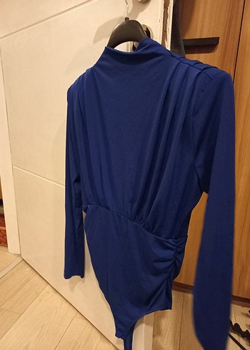 Fitted kesim, boğazlı ve uzun kollu kadın bluz. Koyu mavi renkte, sentetik kumaştan drapeli tasarıma sahip, midi boyda günlük kullanıma uygun.Kalıbı dardır.