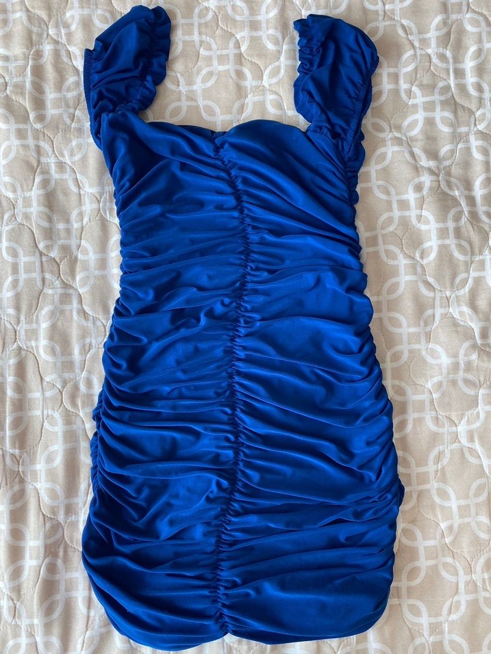 Mavi Drapeli Mini Abiye Elbise