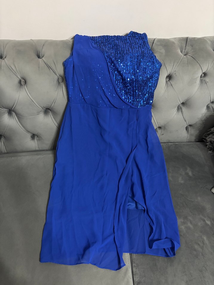 Mavi Drapeli Straplez kısa Abiye Elbise