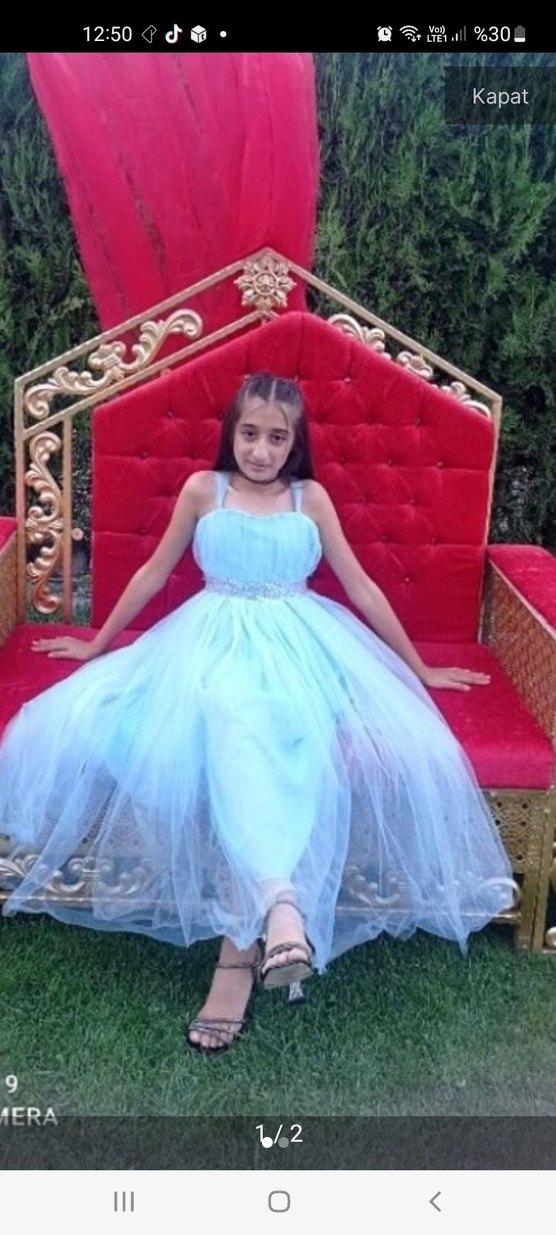 Mavi Drapeli Straplez Kız Çocuk Elbisesi