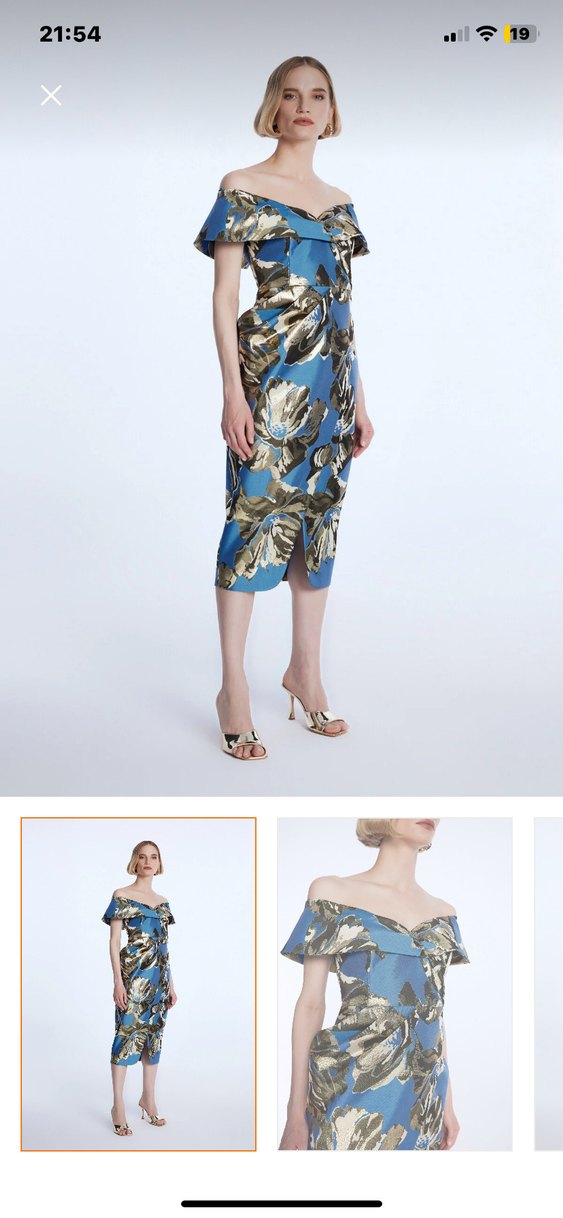 Hafif mavi renkli, straplez, drapeli ve baskılı desenli mini kalem elbise. Sentetik kumaştan, regular fit kesimle parti için uygun.