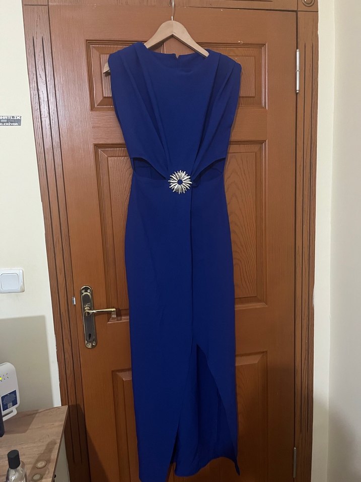 Mavi Drapeli Uzun Abiye Elbise