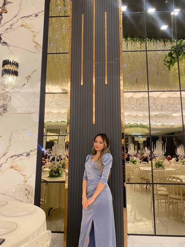 Parlak mavi renkte, az kullanılmış abiye