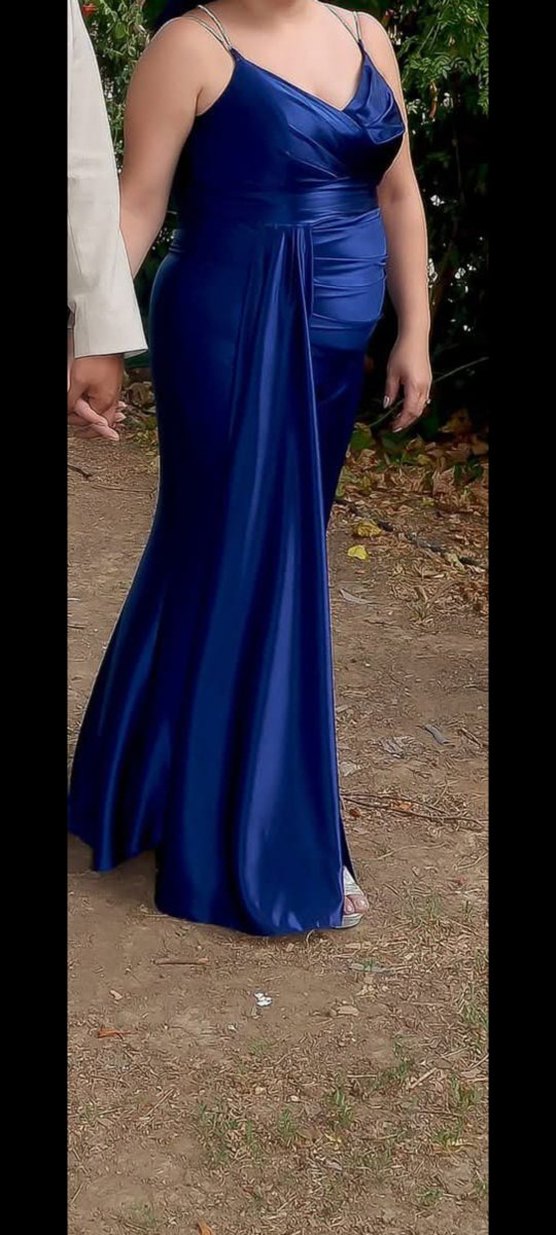Bu mavi uzun elbise, drapeli tasarımı, V yakası ve ince askılarıyla klasik ve şık bir görünüm sunar. 38 40 beden rahat giyer arkası baglamali saten