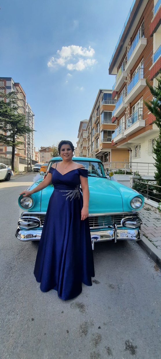 Mavi Drapeli Uzun Kadın Abiye Elbise