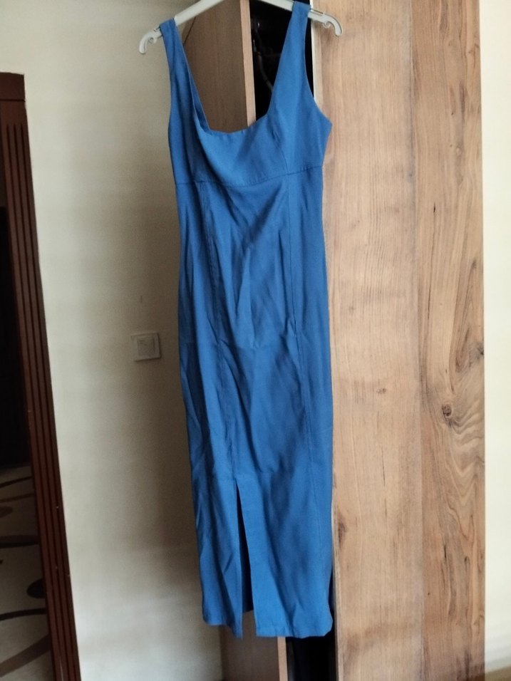 Mavi Drapeli Uzun Kadın Elbise