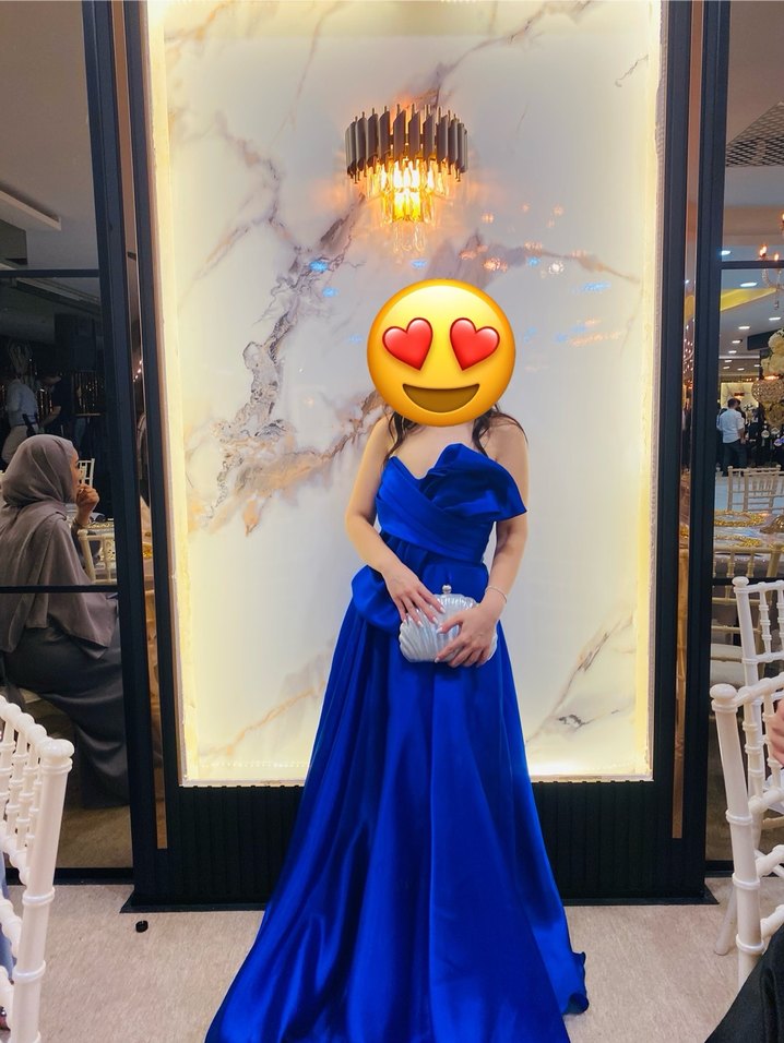 Mavi Drapeli Uzun Straplez Abiye Elbise