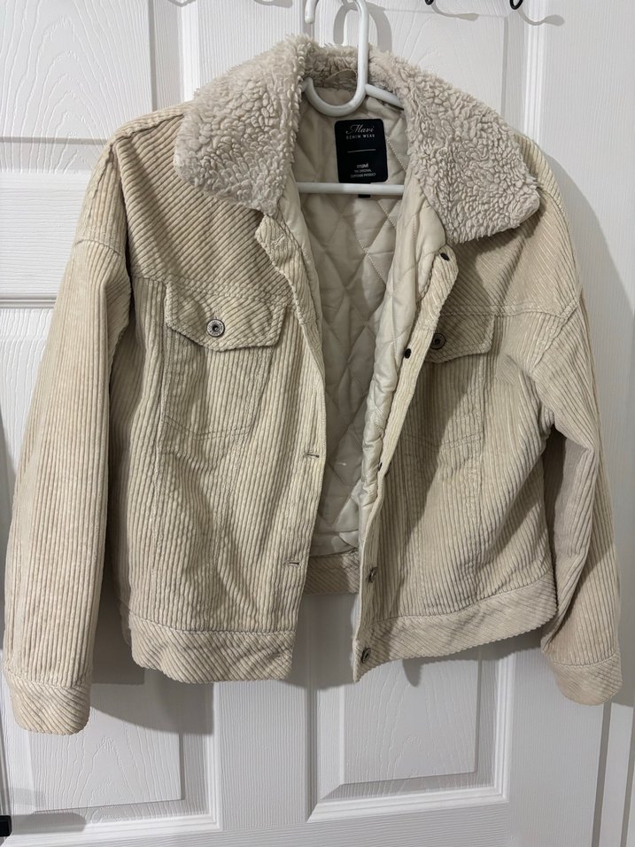 Düğmeli, bej renkli kadın ceket, keten kumaştan ve uzun kolludur. Notlu yaka ve salaş kesimiyle rahat ve günlük kullanıma uygundur.