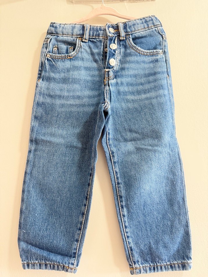 Mavi Düğmeli Bol Kesim Kız çocuk Kot Pantolon