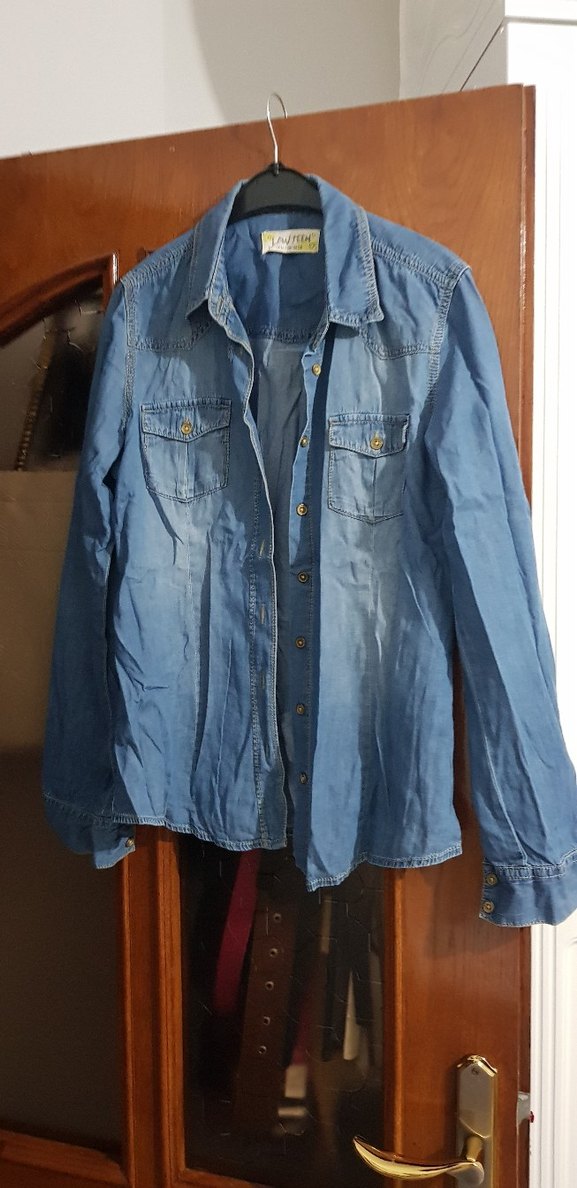 Mavi düğmeli denim kadın gömlek, uzun kollu ve notalı yaka detaylıdır. Rahat kesimi ve iki göğüs cebi ile gündelik sokak stiline uygundur. Hijyen amaçlı değişim ve iade yoktur.