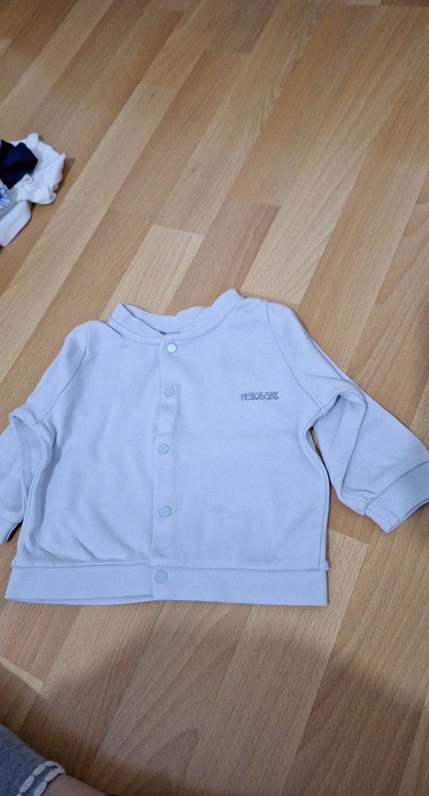 Pastel mavi renkli, düğmeli ve uzun kollu erkek çocuk hırkası. Yumuşak ve sıcak kumaştan, sade tasarımlı ve küçük logolu.
