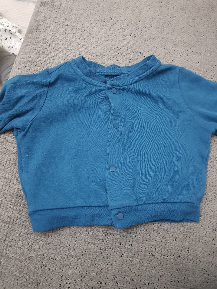 Mavi renkli, düğmeli ve uzun kollu erkek çocuk hırkasıdır. Rahat kesimi ve yumuşak, sıcak kumaşıyla günlük kullanıma uygundur.