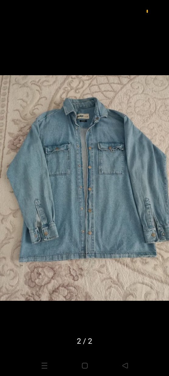 Mavi Düğmeli erkek Denim Ceket temiz ve deforme yok