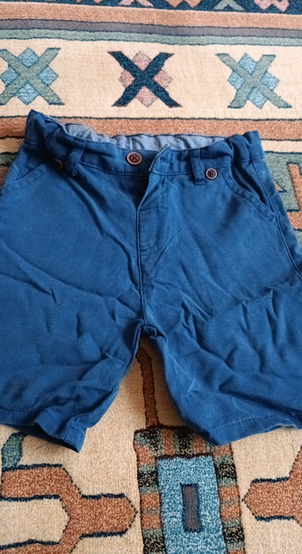 Mavi renkli, düğmeli bel detaylı, bol kesim erkek kot şort. Desensiz ve renkli tasarıma sahip, rahat sokak stili için uygun.