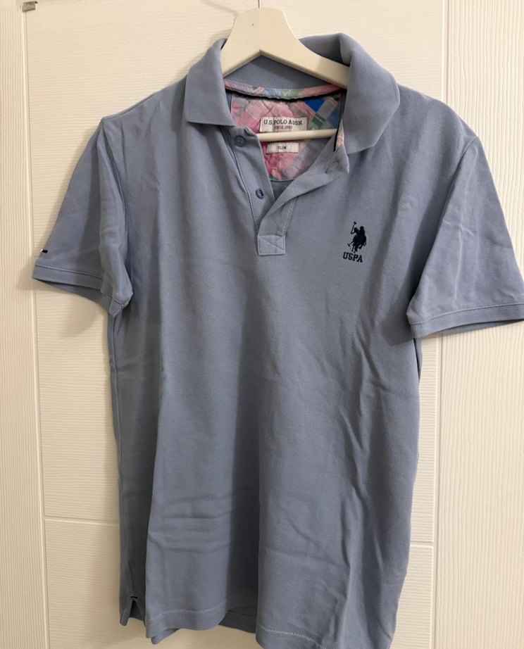 Düğmeli ön kısım ve kısa kollu, yakalı bu erkek polo tişörtü, yumuşak sentetik kumaştan yapılmıştır. İki kere giyilmiştir kusuru yoktur