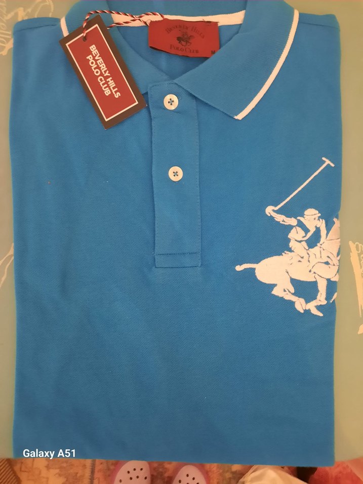 Mavi renkli, pamuk kumaşlı, düğmeli ve baskılı tasarıma sahip, dar kesim erkek polo yaka kısa kollu tişört. Rahat sokak stili için uygundur.