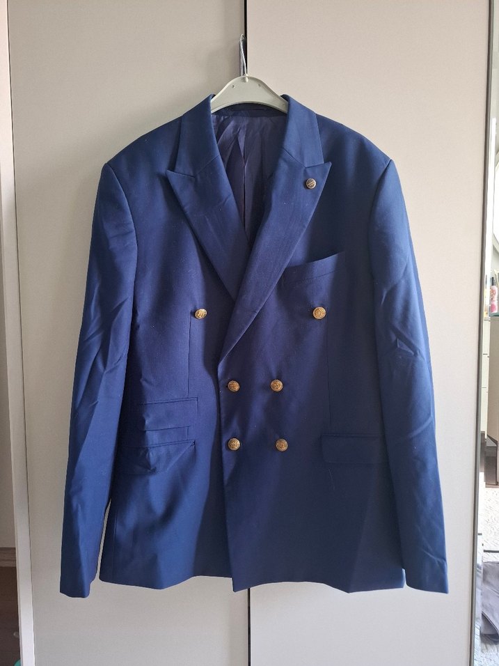 Düğmeli, mavi erkek takım ceketi, klasik şıklık ve iş ortamına uygun. Normal uzunlukta, uzun kollu ve düz desenlidir. Streetwear tarzında, rahat kesim sunar. kuru temizlemeye ihtiyacı var ona göre fiyatı koyuyorum. 54-6 drop beden. uygulamada beden bilgisi bulunmadığından temsili seçtim.