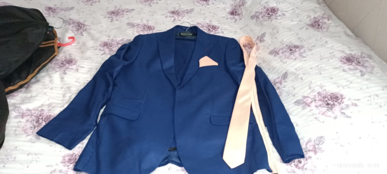 Mavi Düğmeli Erkek Takım Elbise yelekli bir kere giyildi