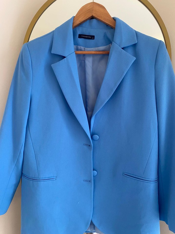 Mavi Düğmeli Kadın Blazer Ceket