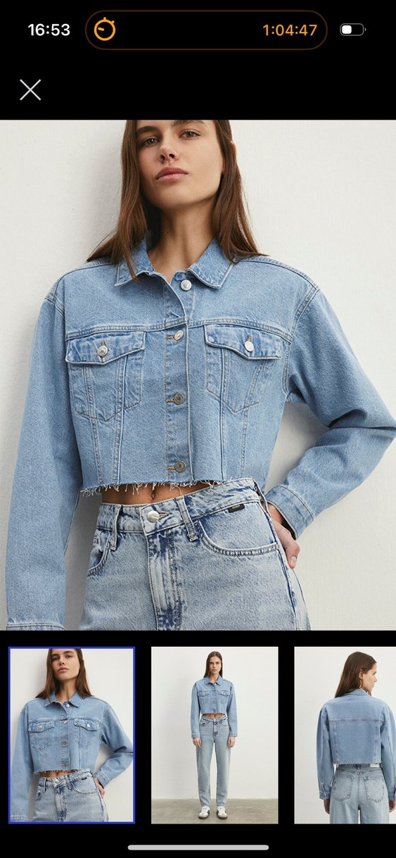 Pastel mavi renkli, düğmeli, uzun kollu, göğüs cepli, normal kesim kadın denim ceketi. Günlük kullanıma uygun rahat bir modeldir. S beden