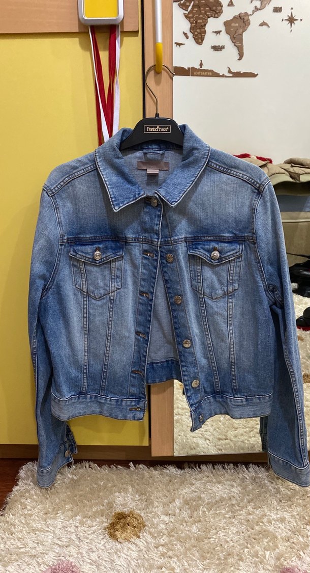 Düğmeli, uzun kollu, çentikli yakalı ve fitted kesime sahip mavi denim ceket, günlük rahat stil için uygundur. ✨