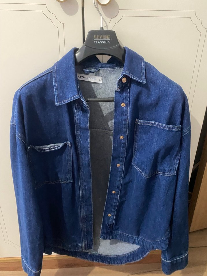 Mavi kot ceketin düğmeli önü ve bol kesimi vardır. Uzun kollu ve yakası çıtçıtlıdır, gündelik şıklık için uygundur. Desensiz yapısı günlük kullanıma uygundur. Pazarlık yapılır