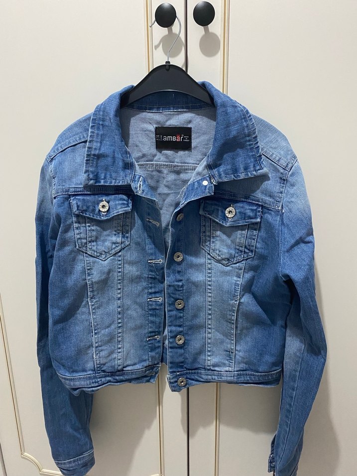 Mavi kot kumaştan, düğmeli ve uzun kollu kadın ceketi. Normal midi boyda, notched lapel yakalı ve fitted kesimdir. Günlük sokak stiline uygundur. Hiç bir defosu yoktur.