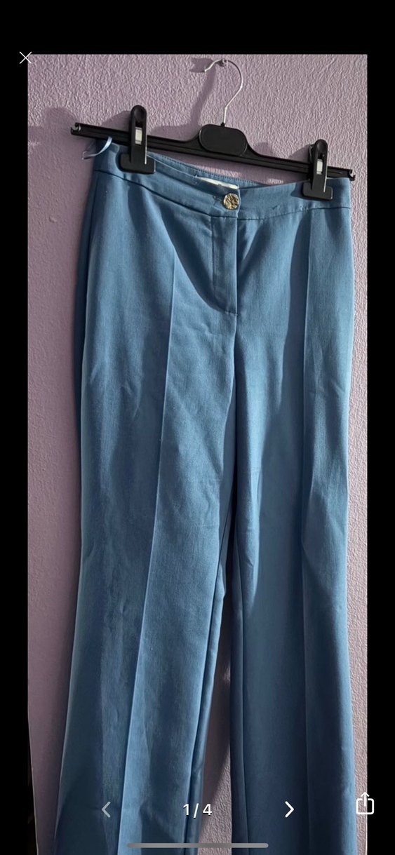 Mavi Düğmeli Kadın Kumaş Pantolon