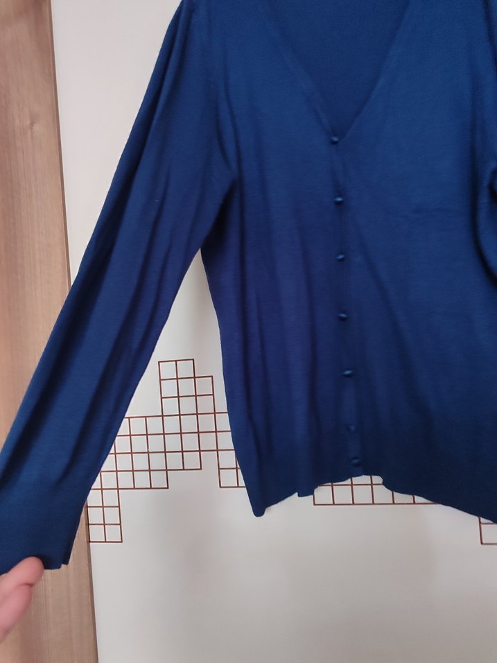Düğmeli detaylara sahip, yuvarlak yakalı ve uzun kollu, bol kesim mavi sweatshirt. Yumuşak ve sıcak kumaştan üretilmiştir, günlük kullanım için uygundur.