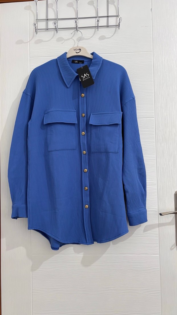 Mavi Düğmeli Kadın Uzun Kollu Gömlek