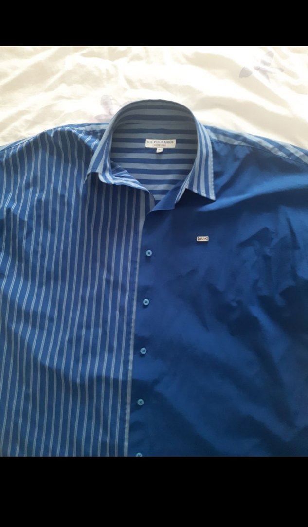 Harika tarz bir gömlek. 40 beden ancak 46 bedene kadar rahat olur geniş kalıptır. Parlak sentetik kumaştan, düz ve çizgili desen karışımıyla casual tarzda, normal kesimdir.